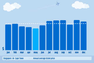 The dotted white line is the average rate for the route for the entire year. The blue bars represent the average ticket price in that month.