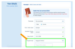 After selecting your preferred flight ticket, you will be redirected to a page to fill in your Passenger Details. There, you can enter your membership or frequent flyer number, per the airline you are booking with.